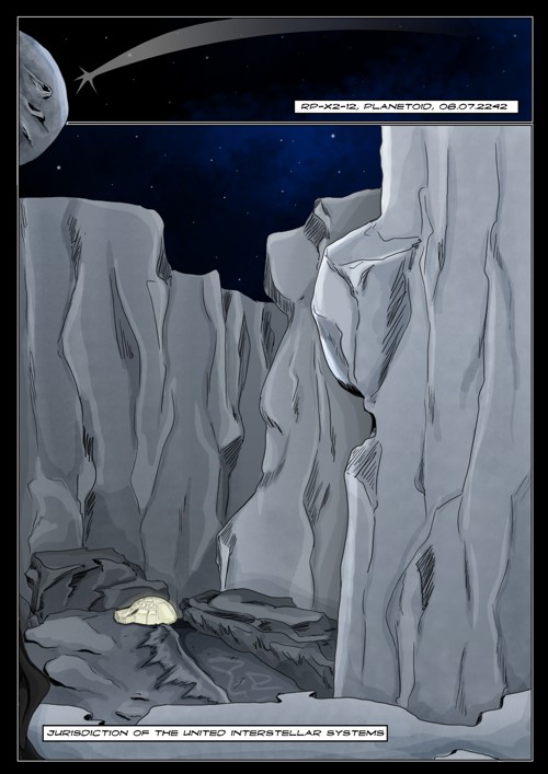 A small group of seven Scientists, stationed on a rock in space, study a strange and unknowen ship with equally unknowen