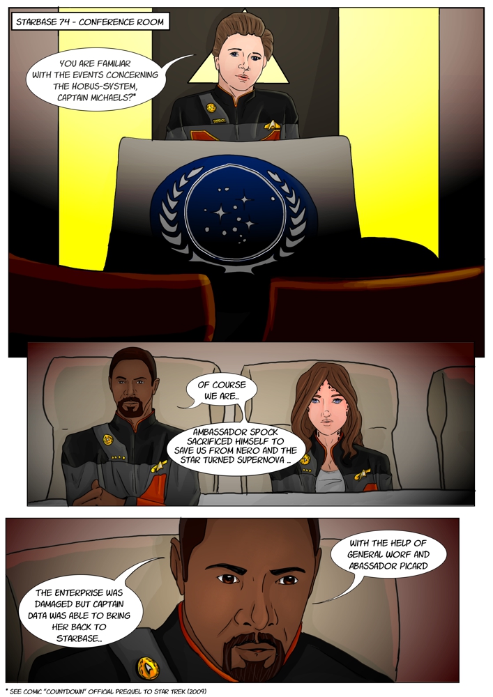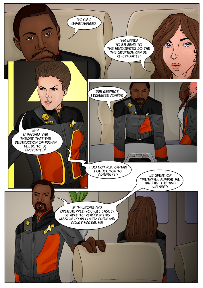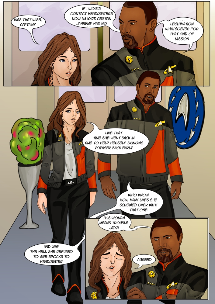 Captain Michaels and Commander Jadzi have been called to Admiral Janeway for mission briefing following the events