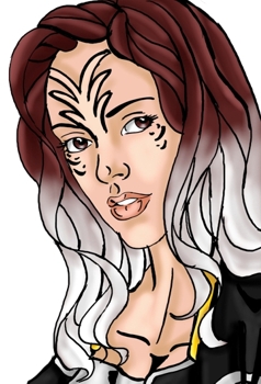 Special Marks Tatoo of an stylized Phoenix in her neck